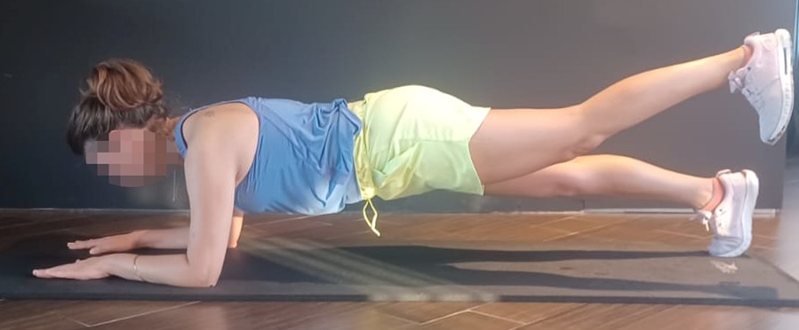 Ejercicio de plancha abdominal con extensión pierna